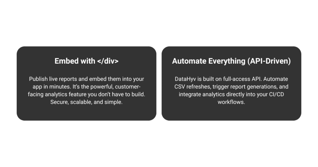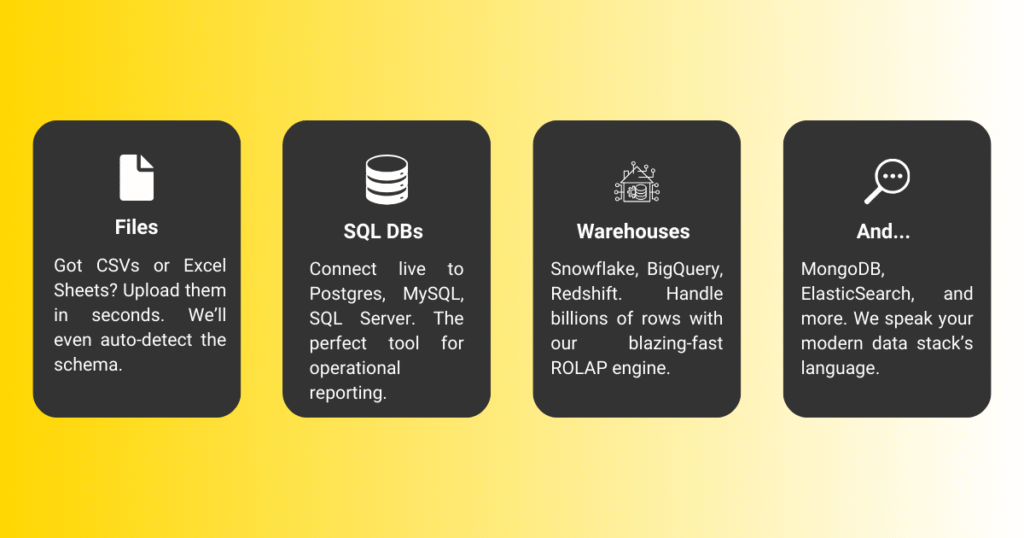Faster, simpler, and built for the modern web. We’re the flexible, lightweight BI layer you’ve been missing.